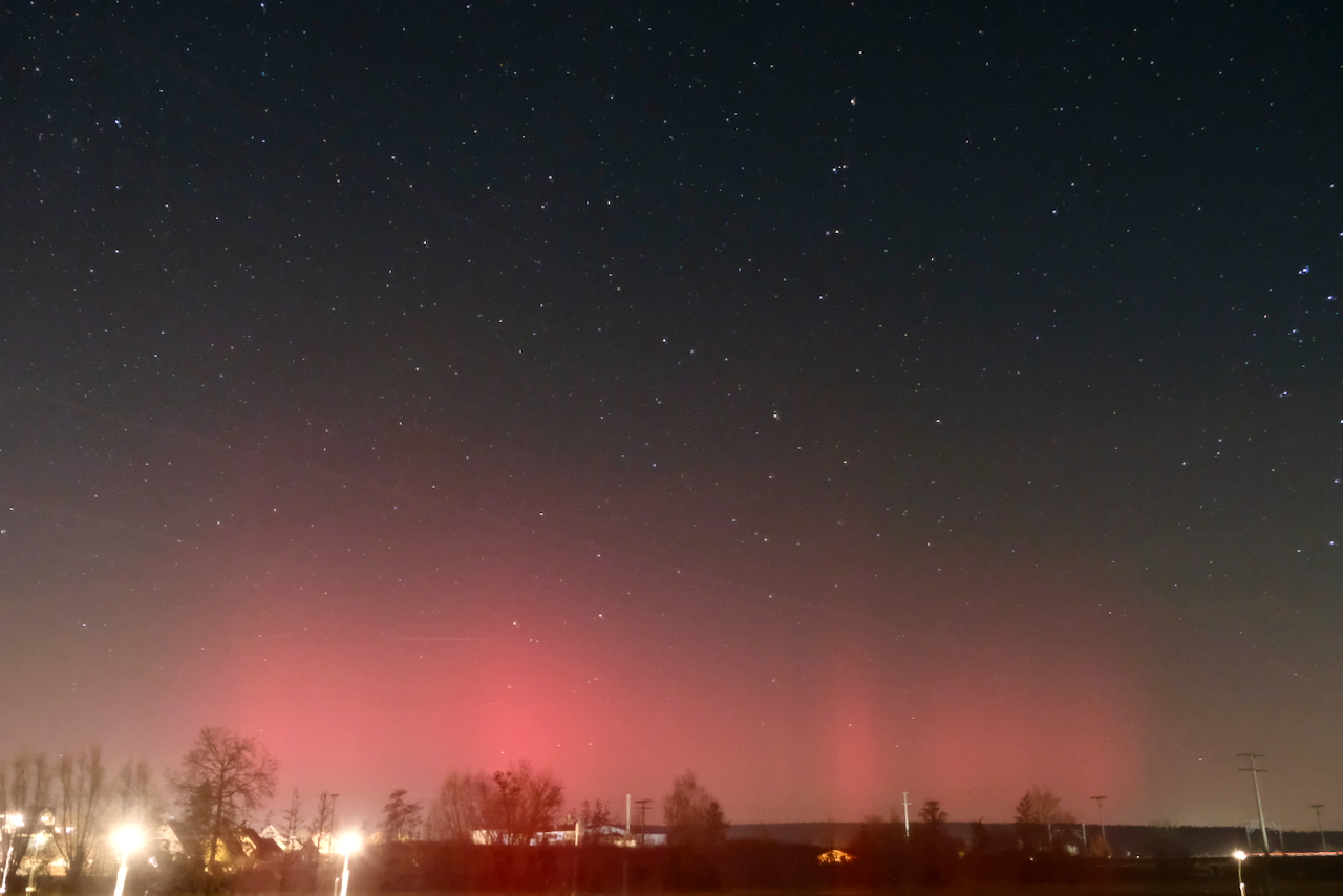 Polarlichter in unseren Breiten sind sehr selten. Schon bei den Polarlichter, die man gelegentlich in den Vorjahren beobachten konnte, war ich völlig fasziniert. Was aber an diesem Abend zu sehen war, übertraf alle früheren Beobachtungen deutlich. Ich hätte nie gedacht, jemals so intensive Leuchterscheinungen in unserer Gegend bewundern zu können. Und es gibt noch Potenzial: Die Sonne durchläuft zur Zeit eine Phase hoher Aktivität. Wer weiß, ob wir noch öfter Polarlichter in Franken beobachten können?